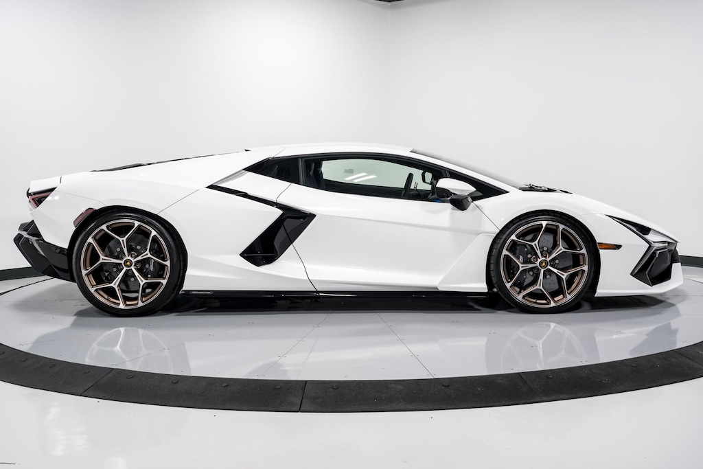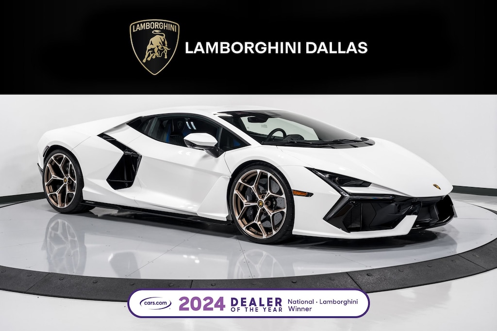 This is a Brand New 2024 Lamborghini Revuelto Coupe equipped with a 6.5L/814-hp/535-lb-ft DOHC 48-valve V-12, plus two 148-hp/258-lb-ft electric motor and one 148-hp, 111 lb-ft electric motor; combined 1001 hp and 739 lb-ft engine, an 8-speed Dual Clutch (auto & paddle shift) transmission with AWD and 4 wheel steering system. This Revuelto is finished in an elegant Bianco Monocerus (Gloss White) exterior color and Nero Cosmus (Black) full leather interior along with contrast stitching throughout.